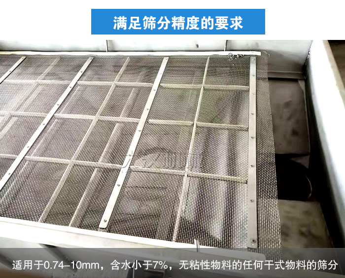直線振動篩適用于0.74-10mm,含水小于7%,無粘性物料的干式物料的篩分,高可以篩分400目以內(nèi)的粉末狀物料,篩分精度可以達到96%以上,非常適合鐵礦粉的篩分。