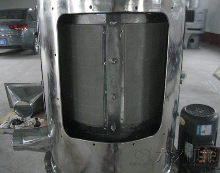 氣流篩摒棄了傳統(tǒng)重力勢能作業(yè)的原理,采用空氣作載體,動能作功的作業(yè)原理,通過負(fù)壓氣流將物料與空氣混合后,進(jìn)入篩機(jī)風(fēng)輪中間,通過風(fēng)輪葉片施加足夠的離心力,向桶型篩網(wǎng)噴射過網(wǎng),經(jīng)過蝸殼收集。超徑物料不能過網(wǎng),由自動排渣口排出,從而達(dá)到快速篩分的目的。