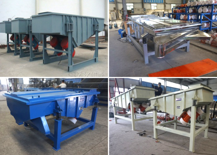 DZSF直線振動篩利用振動電機(jī)作為振動源,當(dāng)兩臺振動電機(jī)做同步或反向旋轉(zhuǎn)時,其偏心塊所產(chǎn)生的激振力在平行于電機(jī)軸線的方向上相互抵消,在垂直于電機(jī)軸的方向疊為一合力,。其兩電機(jī)軸相對篩面有一傾角,在激振力和物料自重力的合力作用下,物料在篩面上被拋起向前作直線運(yùn)動,從而完成對物料的篩選和分級,非常適合流水線自動化作業(yè)。