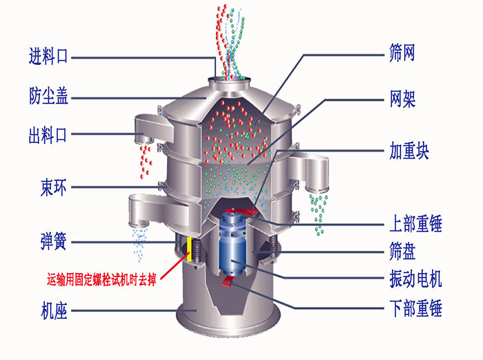 超聲波振(震)動篩主要由防塵蓋、換能器、振動體、減振彈簧、超聲波電源、底座等部分組成。
